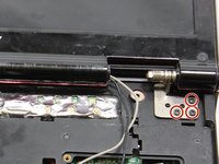 Using the plastic opening tool, pry the base of the cable connecting the screen to the motherboard upwards.