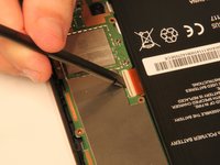 Disconnect the ribbon cable connecting the charging port board to the motherboard using tweezers.
