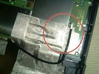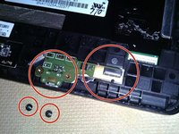 Remove the 5 screws holding the Mainboard and Speakers in to place. *One of the screws is under the ribbon cable*