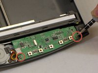 On the bottom half of the casing, remove the two screws in the motherboard.