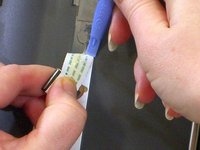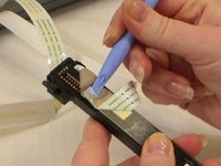 Use the spudger to pry loose the ribbon tab on the inside surface of the casement.