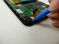 Wedge a curved metal spudger under the speaker in order to remove it.