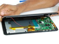 Using the large plastic opening tool, start along a side of the device and apply light pressure in the seam between the top and bottom outer covers.