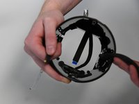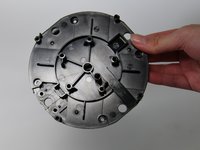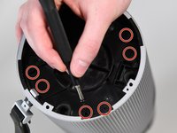 Remove the eight 10 mm screws from the plastic disc inside the grey speaker cage using a Phillips #000 screwdriver.