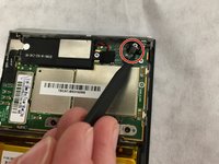 Using the tip of the nylon spudger, lift up the piece of black electrical tape in the upper right corner of the device.