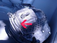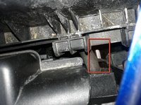 • On the driver side only a portion of the locking lever is visible between the battery and the air box, but you can still reach it with a screwdriver that has a long handle.