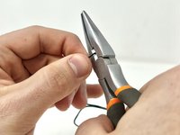 Using your wire strippers/pliers, gently crimp the plastic insulation on the wire. Do this several times around the wire to make sure that you can pull it off.