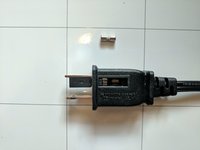 • Use a pair of tweezers or a small plastic spudger to remove the fuse from the fuse casing. Remove the end nearer to the fan body first, then the end nearer to the plug end.