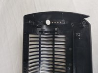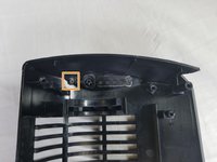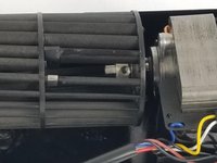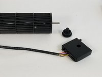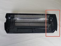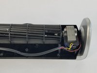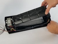 After screws have been removed, open fan up. Inside remove the black and silver directional fins.
