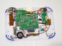 Remove all seven of the 5mm screws on the motherboard to separate the motherboard from the screen.