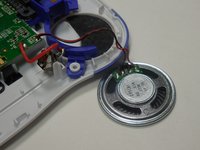 Keeping the plastic piece lifted, carefully pinch the edge of the speaker and remove it.