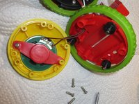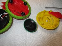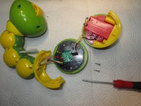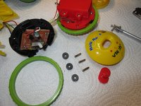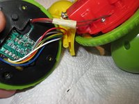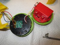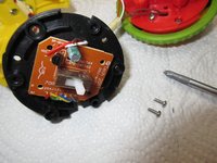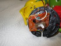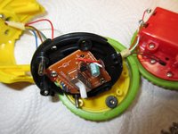My speaker is okay, like you see on picture 2... The wires are okay and the speakers looks good too. So I reassemble it and had to look at the electronics-board, that you see on the third picture. It is in the other wheel of Rolliraupe. Also, unscrew ALL screws. Then it opens easy.