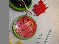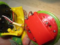 Now reassembly. Put on the black part with the electronics, take care of the red button from the switch that it is in right position. I had a little trouble with it because teh red button always fell down or the black rolls falled away. That was something ugly to work. ...Then drill in all scres.