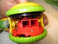 Then you pull away the yellow part and the Rolliraupe opens in three parts: Yellow part, right wheel, left wheel, all together with some wires.