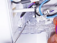Use a flathead screwdriver, or a similar tool, to press the plastic clip toward the dispenser assembly.