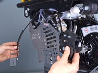 Grab both ends of the throttle wires and feed them out, past the metal engine guard.
