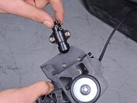 Use a Phillips driver to remove the screw securing the throttle cable to the actuator arm on the motor.