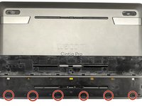 - Main screws holding the casing to the display are hidden under rubber feet held by strong adhesive.
