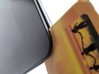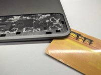 Push gently on the clip to allow flat plastic tool to be inserted on the corner of the device