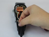 Remove the white wire connected to the power cord and the motor by grabbing the white wire firmly on both sides near the motor mounting and wiggling until release.