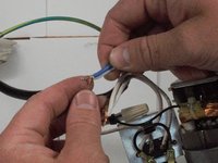 Unscrew each white wire cap in order to free the motor from the power cord.