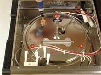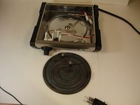 The hot plate is held in place by multiple screws along the burner ring and electrical wires. When free from the frame, take care when removing the iron plate itself as it is fairly dense.