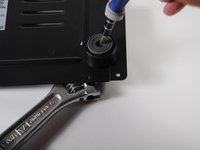 While using the wrench to hold the bolt, use the screwdriver to remove the screw.