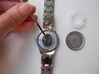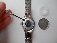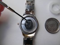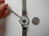 Take the old battery out of the watch. You can use the mini flat head screwdriver to do this.