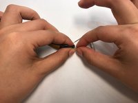 Holding the spring bar in place, take the U-shaped part of the new buckle and line it up with the ends of the strap.