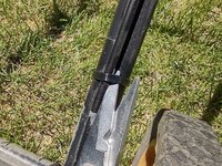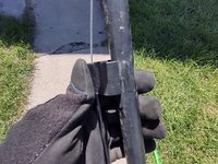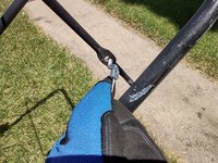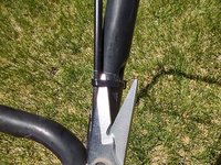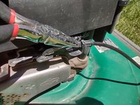 Use the utility shears to cut the zip ties which secure the cable to the upper and lower handles of the mower.