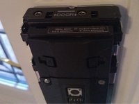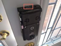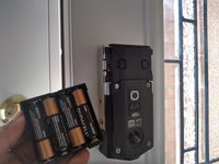 Find the battery pack (marked "DOOR" in between two arrows) at the top of the lock.