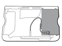 Place your thumb and forefinger on the blood pressure (NIBP) hose connector. Squeeze the side tabs until the connector releases.