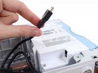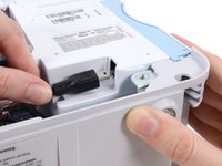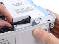 Grasp the power supply cable firmly and lift both it and the spudger from the channel in the power supply housing to unplug the connector.