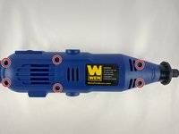 While pressing the spindle lock button, unscrew the collet nut and remove it along with the brass collet.