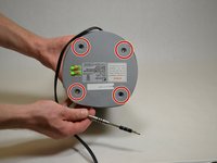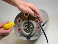 Remove 5 smaller screws visible through small holes between the base and the casing.