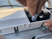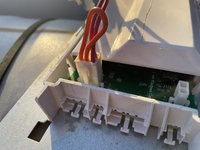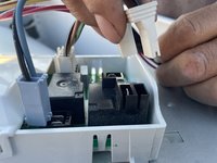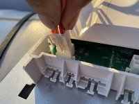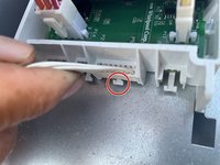 Use the new circuit to put in the board. Ensure the two white hooks are connected to the metal base.