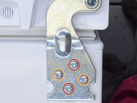 Pull the door hinge straight up to separate its alignment pins from the chassis.