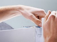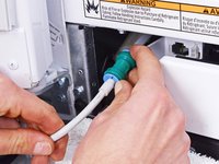 Use one hand to compress the blue plastic ring into the green section of the hose.