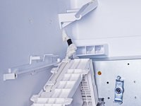Note: Some photos show the doors removed for clarity purposes. Removing them is not required and will not change the procedure.
