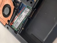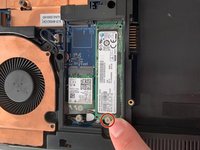 Remove the Phillips screw securing the M.2 SSD drive in place. The end of the drive will pop up by a small amount.