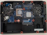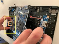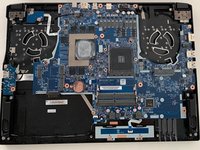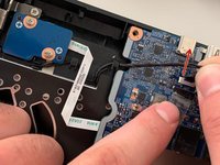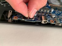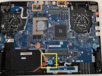 Carefully lift the motherboard to access the remaining cable attached to the bottom side of the board.