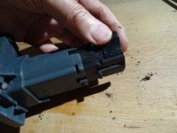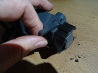 Ziehe die Halteklammer aus Plastik vom beweglichen Unterteil der Brühgruppe ab. Sie ist nur aufgesteckt.