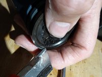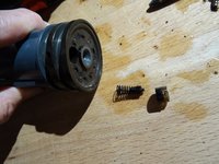 Darunter ist das Ventil. Es besteht aus einer Feder und einem kleinen Kolben. Reinige alles sehr gut, auch die Kanäle. Sei sehr vorsichtig dabei.