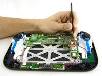 Place Gamepad face down and remove the two 4.7 mm screws with a Phillips size #00 screwdriver.