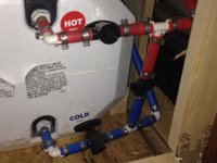The valves are placed in such a way as to allocate cold water into the water heater and out. The cold-hot junction valve is closed