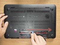 Slide the battery release latch to the right and the battery will pop up slightly.