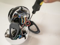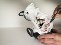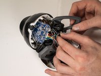 Remove the 4 Phillips screws on back of the head, and pull off the casing for the back of the head.