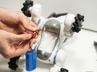 Once the battery is removed from body, the battery should be connected by a red and black wire. There is a red rectangular connector that easily pulls apart. Pull apart the red rectangular connector.