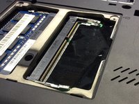 Start by removing the battery from the laptop. The battery should be removed to prevent damaging the motherboard when the RAM is installed and removed.