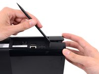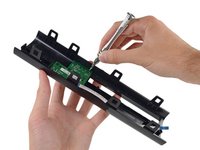 • Removing the bottom and top panels requires us to release a few clips along the perimeter of each panel with the aid of our metal spudger.